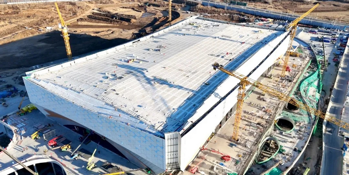 秋碧如洗的渾河之畔,“云上冰玉” 正以出水芙蓉之姿亭亭玉立。這座總建筑面積達(dá) 26.38 萬平方米的冰上巨構(gòu),將 “城市與自然共生” 的理念凝于鋼筋鐵骨,其中 13.57 萬平方米的國(guó)家速滑館更以流線型弧面勾勒出渾河的靈動(dòng) —— 空中俯瞰,三新實(shí)業(yè)打造的屋面恰似鎏金鳳冠,在北國(guó)陽(yáng)光下流轉(zhuǎn)著技術(shù)與藝術(shù)交融的光芒。