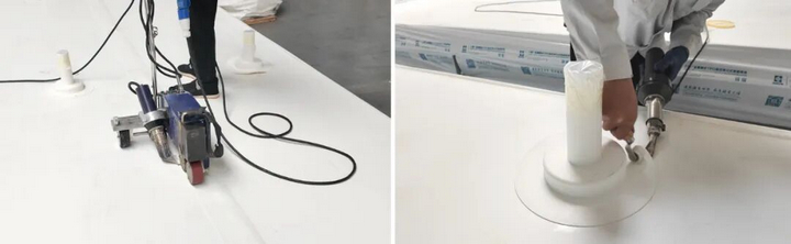 東北的冬季是最大考驗(yàn)。三新專項(xiàng)技術(shù)組優(yōu)化圍護(hù)工藝,攻克低溫TPO 焊接難題;排水天溝內(nèi)置精準(zhǔn)電伴熱系統(tǒng),杜絕凍堵風(fēng)險(xiǎn);光伏支架立桿采用高分子包封件,實(shí)現(xiàn)防水與發(fā)電的無縫銜接。當(dāng)抗風(fēng)揭試驗(yàn)室的模擬狂風(fēng)掠過屋面,這頂 “鳳冠” 用數(shù)據(jù)證明:它不僅是建筑的外衣,更是自然的摯友。